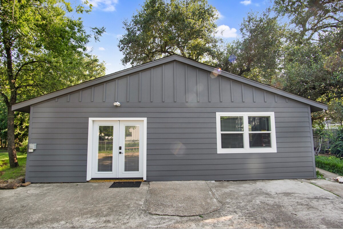 Tag til vores moderne casita med to soveværelser i baghaven, der ligger få minutter fra Texas A&M University. Dette lyse og stilfulde fristed er designet med en ren, moderne æstetik og er perfekt til kampdage, campusbesøg eller en afslappende weekend i Aggieland. Fire personer kan sove komfortabelt i to kingsize-senge – med ekstra lounger og soveplads på store sofaer – denne casita tilbyder den ideelle blanding af bekvemmelighed, komfort og privatliv.