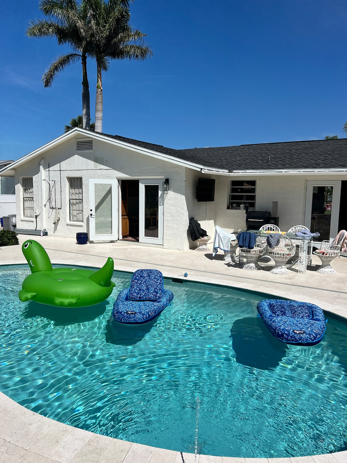 Casa Vivir la Vida er et nyrenoveret hjem med luksusopgraderinger for at sikre dig det mest afslappende ophold. - Opvarmet pool med retrodesign - 15 minutter til Vanderbilt Beach-området - 15 minutter til Mercato butikker og restauranter. - Designet til familier - Kæledyrsvenlig - Designet til op til 10 personer, 3 soveværelser, 2 badeværelser, 5 senge og en futon - Gratis parkering - Vaskemaskine i enheden - Fuldt udstyret køkken - Kæmpe baggård med lysthus. - Hurtig wi-fi - Beboelsesområde. - Grill - Værter tilgængelige 24/7