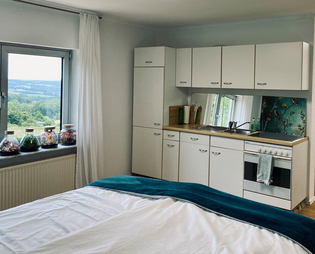 Der er ikke andet end masser af natur her! Til vandreture eller cykling har du et perfekt udgangspunkt fra vores AirBnb ( 20 kvm med privat badeværelse), men det er også dejligt bare at tilbringe en weekend. Du har brug for en bil her. Det er 8 minutters gang til det nærmeste bageri, hvor du kan få en god morgenmad, samt til shoppingfaciliteter Edeka/Penny 8 minutter, nærmeste Lidl/Aldi/Bøne/Milv 12 minutter Bonn 45-60 min. Köln Bonn Lufthavn 45 min Köln 1-1,5 time