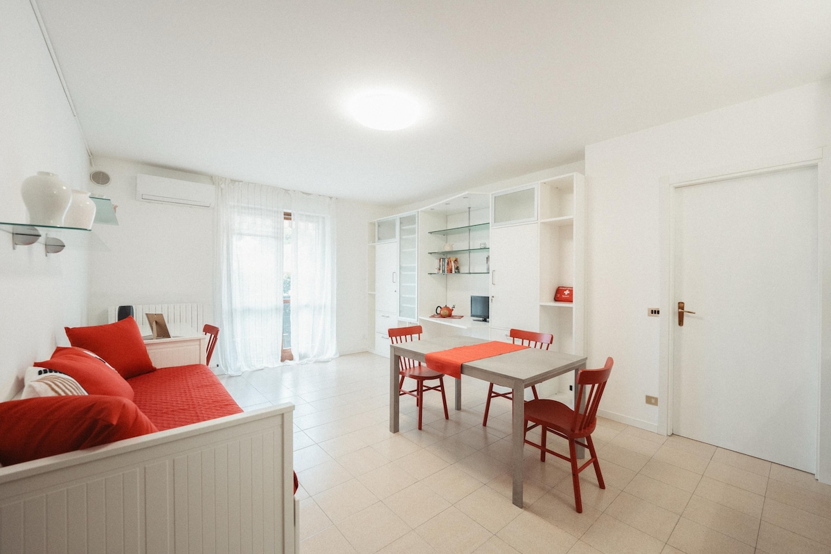 Elegant lejlighed 1,5 km fra Orio al Serio BGY lufthavn, meget tæt på Bergamos centrum, Orio Center og Bergamo Messe. Lejligheden har et soveværelse med dobbeltseng, stue med dobbelt sovesofa, udstyret køkken, induktionskomfur, mikrobølgeovn, kedel, kaffemaskine, tv, wifi, aircondition i soveværelset og i stuen, badeværelse med bruser, hårtørrer og vaskemaskine. Vi tilbyder selv check-in og morgenmad. Parkering til rådighed efter anmodning.
