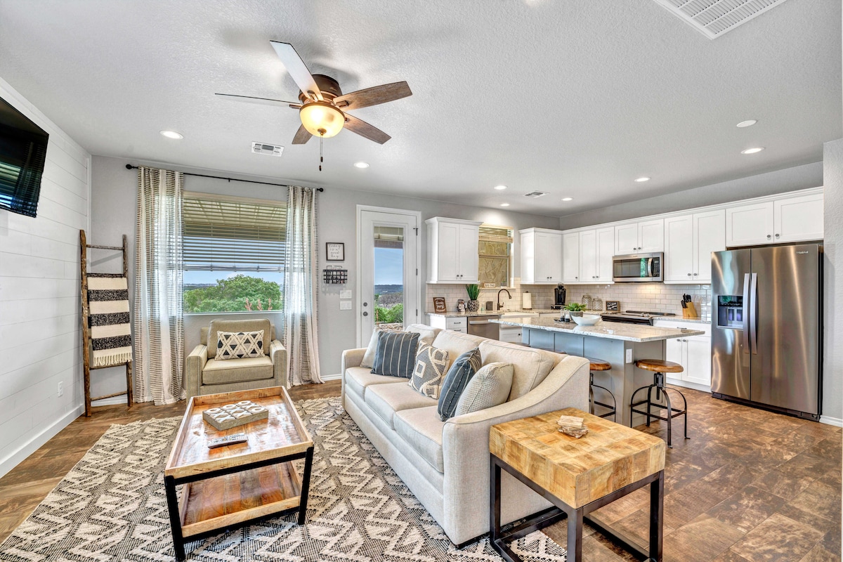 Privat naturlig oase med 3 hytter, privat pool, boblebad i cedertræ og privat observationsdæk. Den private ejendom på 8 hektar ligger i hjertet af Hill Country med fantastisk panoramaudsigt. Nyrenoveret med gennemtænkt design og møbler. Fuld solenergi med net- og batteribackup. *ALLE 3 hytter er inkluderet i prisen* BEMÆRK: Køreturen slutter med en 1,6 km grusvej. Disse er almindelige i Hill Country, og biler i alle størrelser er fine... bare kør langsomt (10 mph)