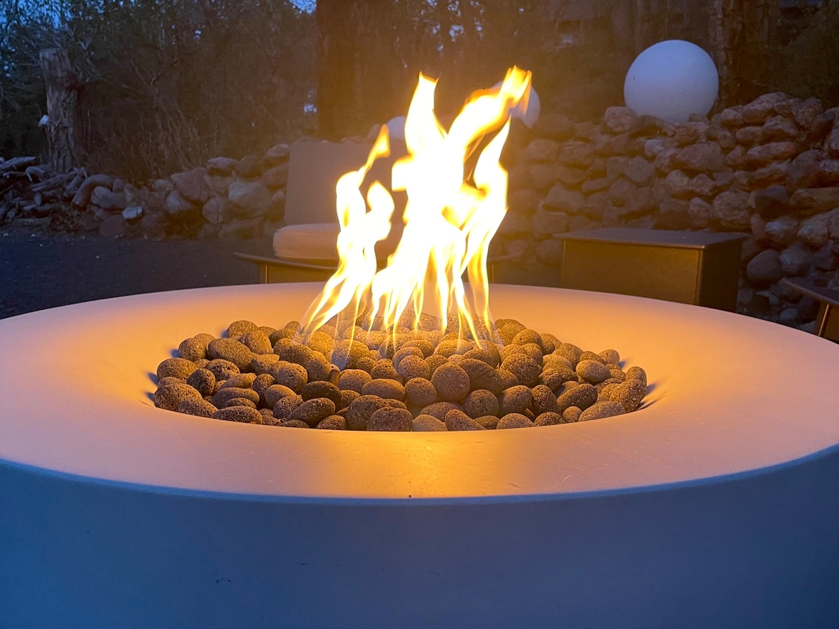 "Stedet er så cool, at du virkelig føler, at du er i et maleri." En privat, solenergidrevet oase rig på karakter. Strålende gulvvarme, vindues-AC, frodig queensize-seng, bruser, tekøkken, 50" TV, wi-fi, streamingkanaler, kaffe+te. L2EV-oplader. 420-venlig; privat terrasse. (Ingen cigaretter, tak.) Søg "eco-art-home" for mit andet opslag. Nævnt blandt 2022 "Top 20 Epic Vacation Rentals in C. Springs" af Broke Backpacker & 1 af "3 af de mest unikke Airbnb i C. Springs" af Springs Mag, 2023