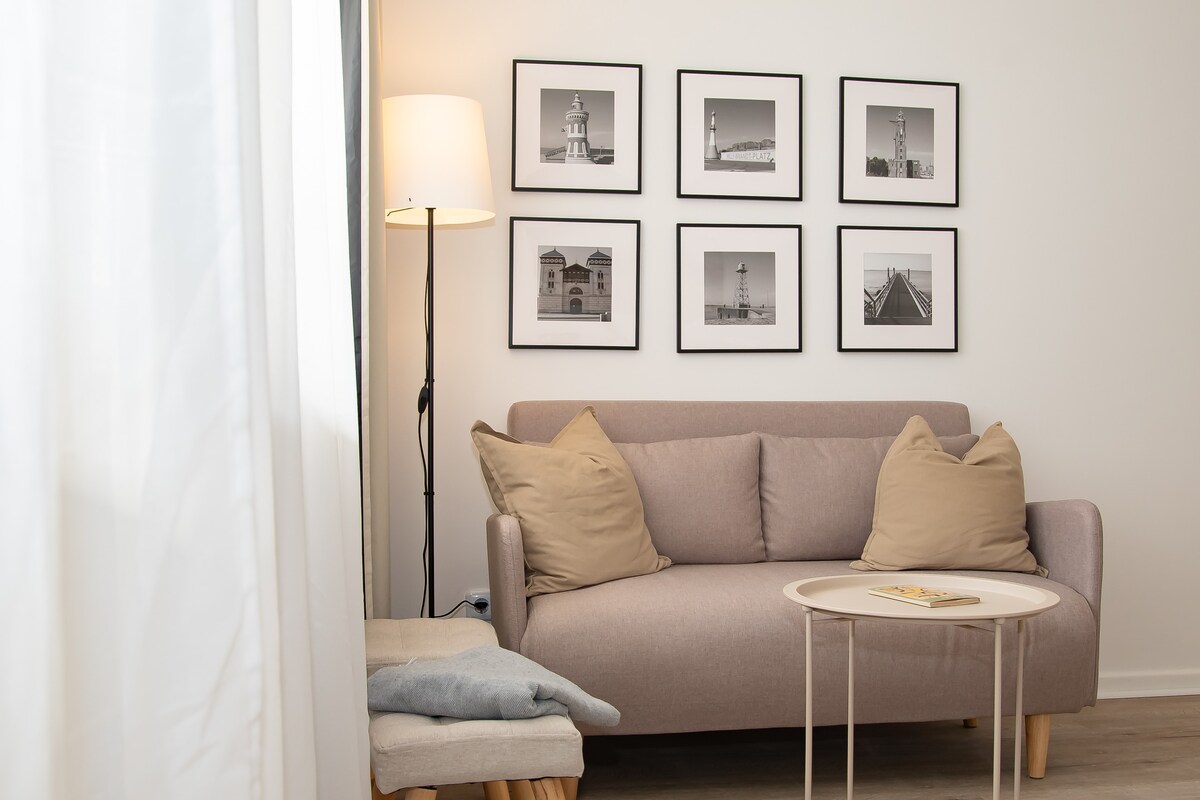 Velkommen til vores stilfulde lejlighed i hjertet af Bremerhaven! Denne ejendom ligger direkte i fodgængerzonen og har plads til op til seks personer og er det ideelle udgangspunkt for en afslappende ferie eller en kort tur til Seestadt. - Den bedste beliggenhed i centrum – caféer, restauranter og butikker lige udenfor - 2 soveværelser med komfortable senge - Fuldt udstyret køkken - Stue med tv og sovesofa - Sightseeing på et par minutter