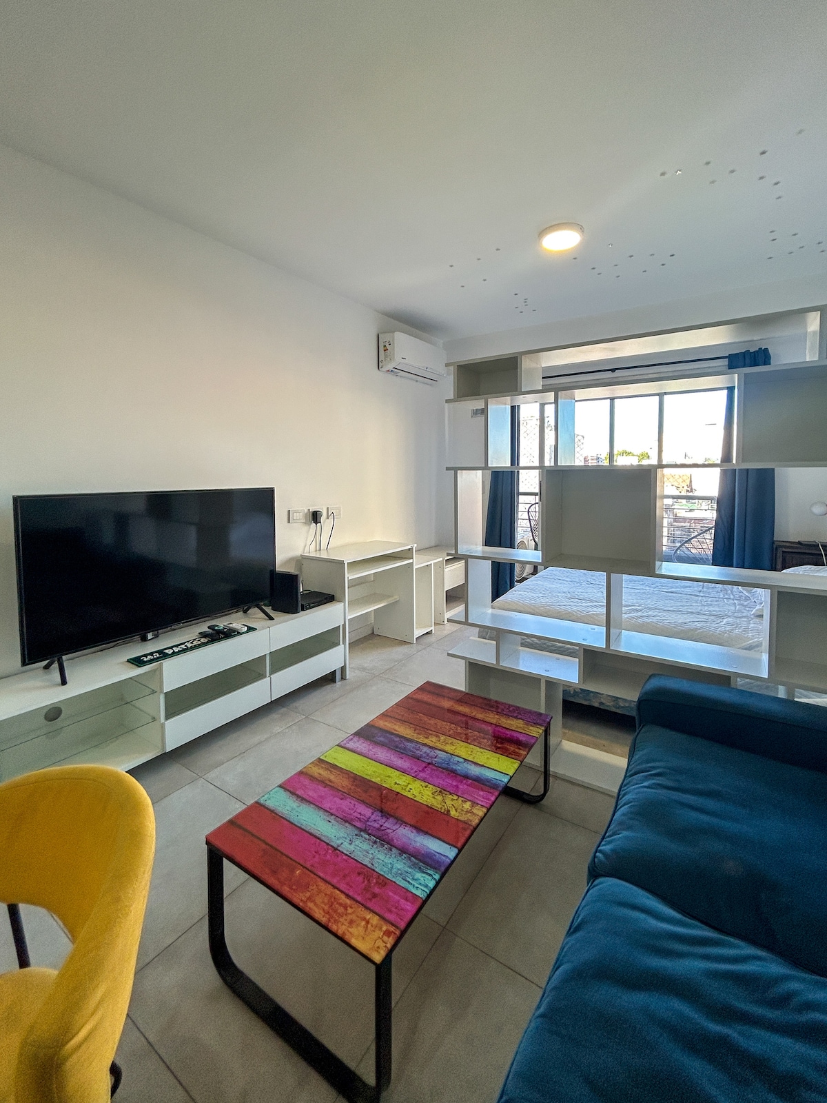 Ét-værelses lejlighed, så du kan nyde dit ophold alene, som par eller med en ven. Det er et moderne rum fuld af stil og funktionalitet.✨ Et minimalistisk design med moderne farver, velplejede detaljer og masser af naturligt lys🌿. Et perfekt hjørne til at arbejde, slappe af eller bare nyde en hyggelig atmosfære. 📺💡