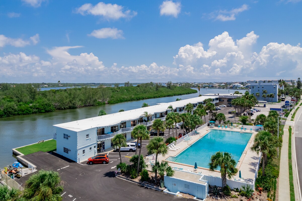 Opdateret atelier, der er perfekt til din strandferie! Fantastisk beliggenhed med Intercoastal Waterway i din baggård og adgang til den offentlige strand lige på den anden side af gaden foran! Når du ikke nyder solen og sandet, vil du sætte pris på de fælles faciliteter, som omfatter den næststørste største pool (ikke opvarmet) på alle barriereøerne, bådpladser, picnicborde/grillområde og shuffleboard. Studiet på anden sal er komfortabelt og udstyret med alt, hvad du har brug for... bare medbring din solcreme!