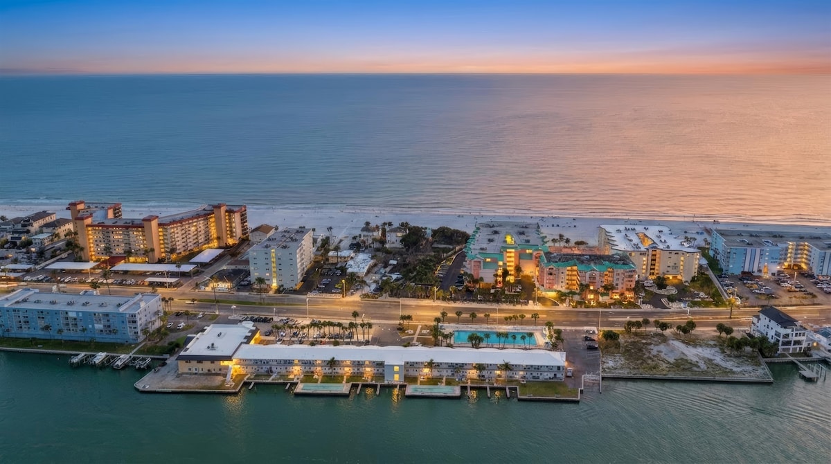 ✨Lys og luftig 2BR kun 1 MINUTS GANG TIL STRANDEN!! 🏝️ Nyd en privat balkon plus adgang til terrassen ovenpå, hvor du kan slappe af og se ud over vandet. 🏡 Fuldt udstyret køkken, hurtig wi-fi og en hyggelig stue gør det perfekt til familier, par eller længerevarende ophold. Enheden har masser af naturligt lys og et åbent layout. 🌊 Beliggende i fredelige Redington Shores, få skridt fra Golfen, lokale caféer og smukke solnedgange. Gratis parkering og nem indtjekning uden vært for en ubekymret ferie.