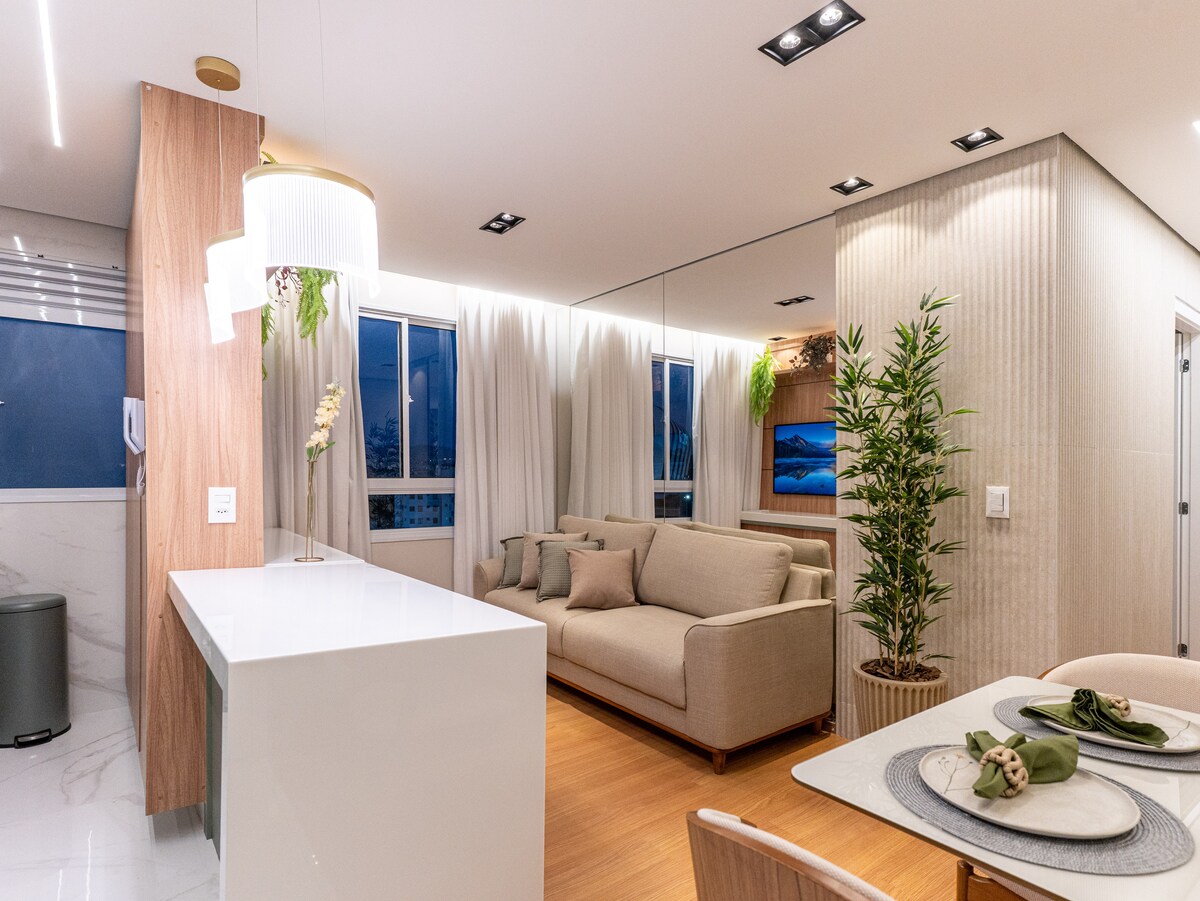 Ny og hyggelig lejlighed ved siden af MRV Arena Indtjekning uden vært – elektronisk låsadgang. Privilegeret beliggenhed – mindre end 7 minutters gang fra MRV Arena og 5 km fra Expominas, med nem adgang til byens hovedveje. Fantastisk udsigt – på 13. etage, med elevator og udsigt over Stadium of the Rooster. Lejligheden var forberedt med omhu til at modtage dig. Værelserne er godt fordelt, moderne og indbydende og tilbyder den ideelle komfort til dit ophold.