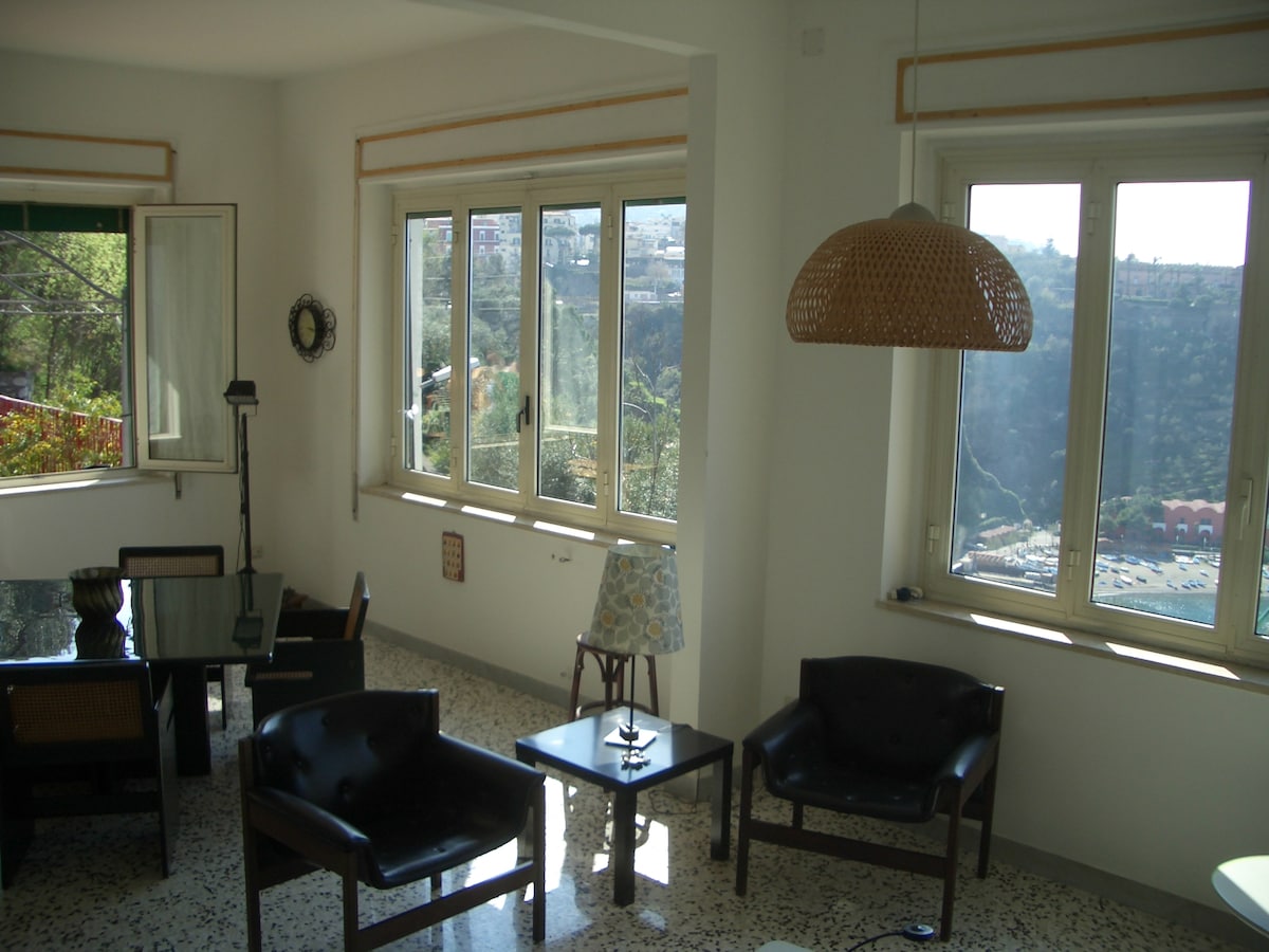 Uno scrigno nel cuore del Parco dei Monti Lattari: ideale per chi vuole trascorrere una vacanza all'insegna della natura e del relax, ma allo stesso tempo desidera visitare le perle della Penisola Sorrentina e Amalfitana. L'appartamento è dotato di camera da letto con matrimoniale e singolo(divano letto) con vista sul Vesuvio, cucina, bagno privato con doccia e terrazza sul mare e sul verde delle colline.