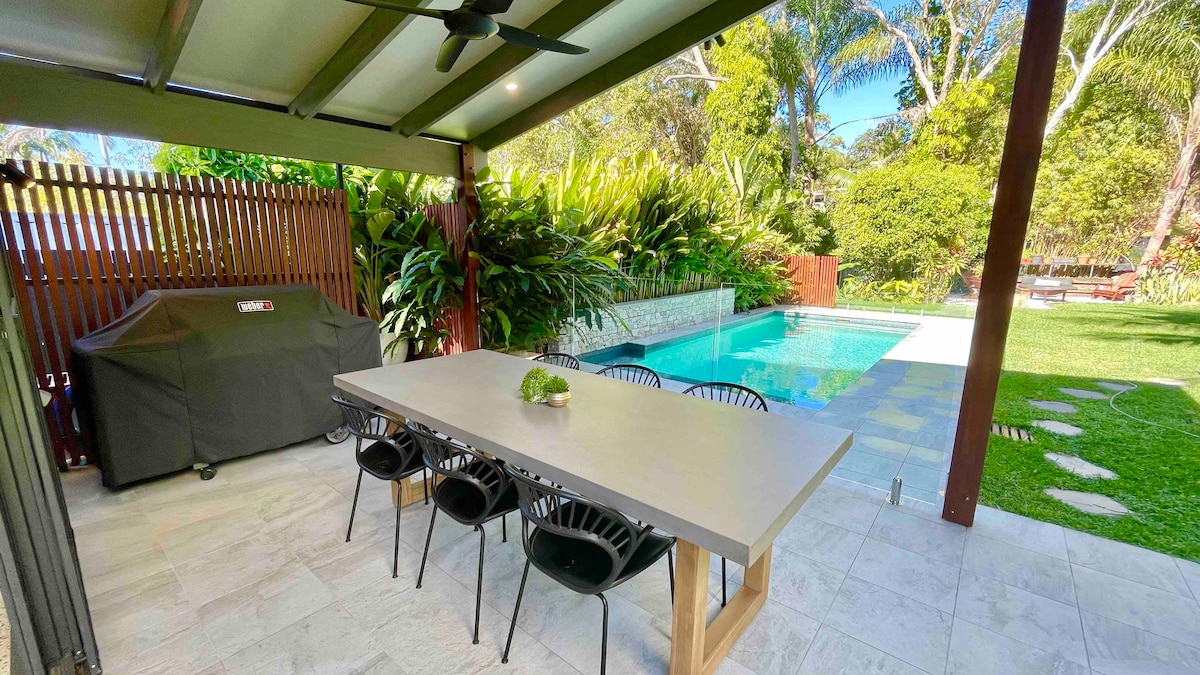 Privat Poolside Villa mindre end 1 km fra stranden og 400 meter til Mount Coolum vandretur, der ligger i den grønne kystforstad Mount Coolum. Din egen private pool i en nyrenoveret villa med komplet køkken, opholdsstue + udendørs udendørs med Weber BBQ. Vi bor i hovedhuset på ejendommen, men boligen er privat, og vi er som regel væk, når vi udlejer Airbnb. Gåafstand fra butikker, caféer og restauranter, og hvis du kommer ind i cykler, er der km sti lige uden for døren.