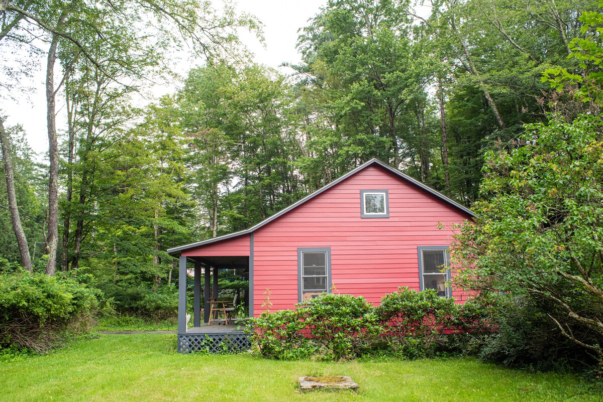 Kryb sammen ved en brændende ild. Spis i en hjørnekrog eller ved en rustik trædisk ved et vindue. Denne charmerende, finurlige bolig har en privat terrasse med grill, en have med hængekøje og bålplads. En Murphy-seng i fuld størrelse med et komplet køkken (bortset fra en ovn). Du har adgang til hele gæstehuset. En kort køretur til den smukke, eklektiske, funky by Woodstock. Kunst og kultur, restauranter, vandreture og cykling i nærheden. Elvarme, loftsventilator, en stående airconditionenhed og brusebad til én person.