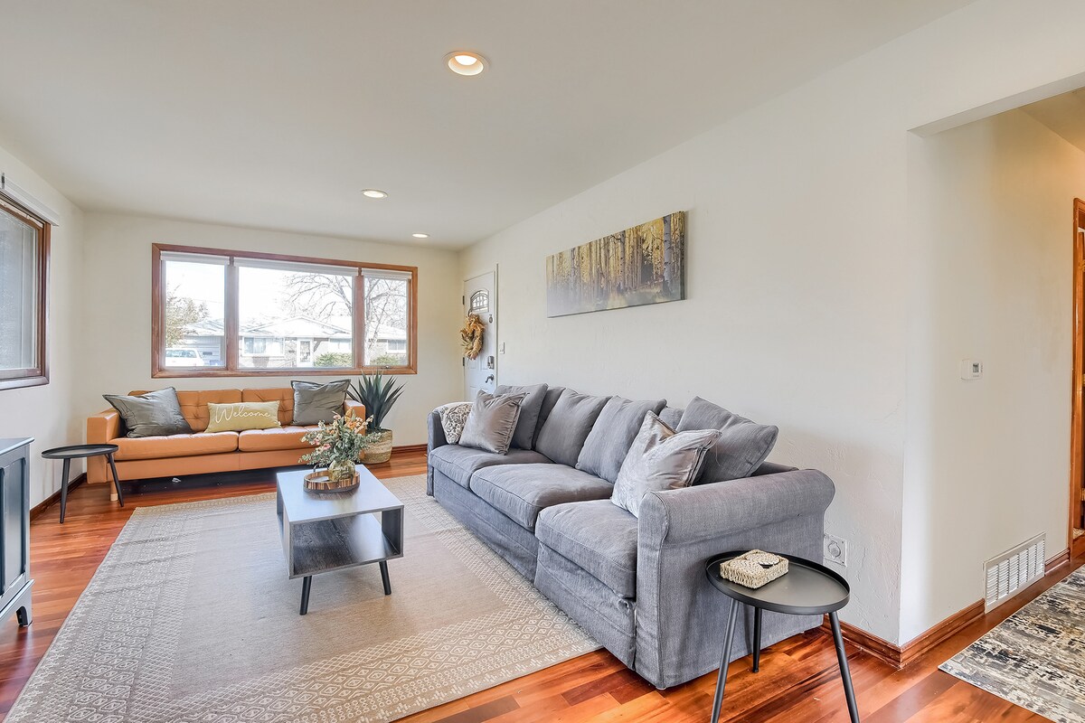 Velkommen til Casa Moderna Colorado - med en cedersauna, bålplads og masser af udendørs siddepladser på den store terrasse, hvor du kan nyde Denvers 300 solskinsdage. Premium madrasser med hukommelseskum, 55" tv, højhastighedsinternet, skriveborde i hvert soveværelse og meget mere! Send os en besked for at få efterårs-/vinterrabatter. Centralt beliggende og nem adgang til motorvejen for hurtigt at komme til vandrestier, downtown Denver (15 min), Golden (15 min), Red Rocks (20 min), Boulder (25 min) og skisportssteder (60-75 min).