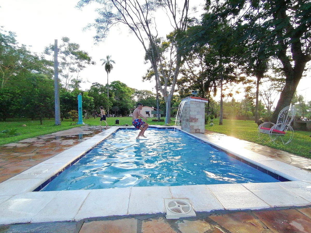Cirka en times kørsel fra Asuncion. Cerro Kavaju i Caacupe er et beskyttet naturområde. Du vil nyde den naturskønne køretur, når du kører gennem bjergene, træerne og de forskellige husdyr (heste, geder, køer, lokal fauna med dyreliv). Særligt for unge familier med børn, der ønsker en gårdoplevelse. Nyd hele denne ranch med alle de nødvendige faciliteter, grill til barbecue, slap af i paraguayanske hængekøjer og en pool. Forestil dig selv at nyde asado med udsigt over de smukke solnedgange i bjergene.