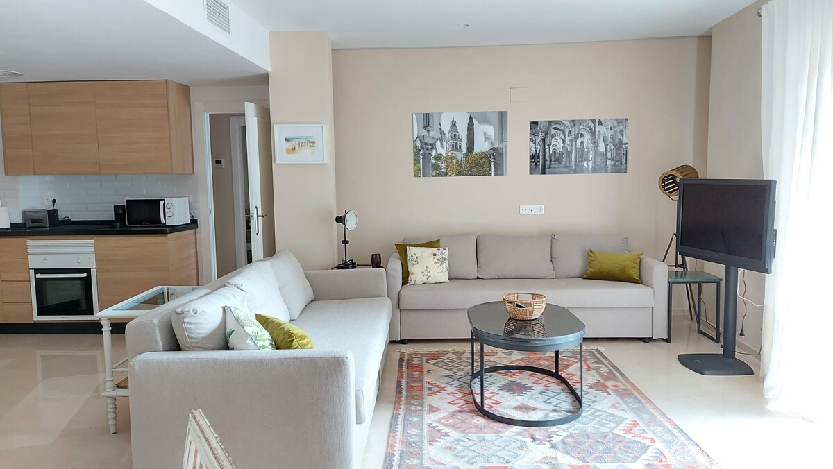 Espectacular apartamento nuevo a estrenar situado en el centro de la ciudad, a escasos minutos de la plaza de las Tendillas y a 10 minutos de la Mezquita Catedral. Perfecto para recorrer sus callejas y visitar los monumentos a pie. En esta zona puedes encontrar bares, restaurantes y las principales tiendas. Consta de 3 habitaciones para dos personas cada una y salón con sofá cama. Cocina perfectamente equipada y dos baños. Decoracion especial que hará tu estancia muy agradable.