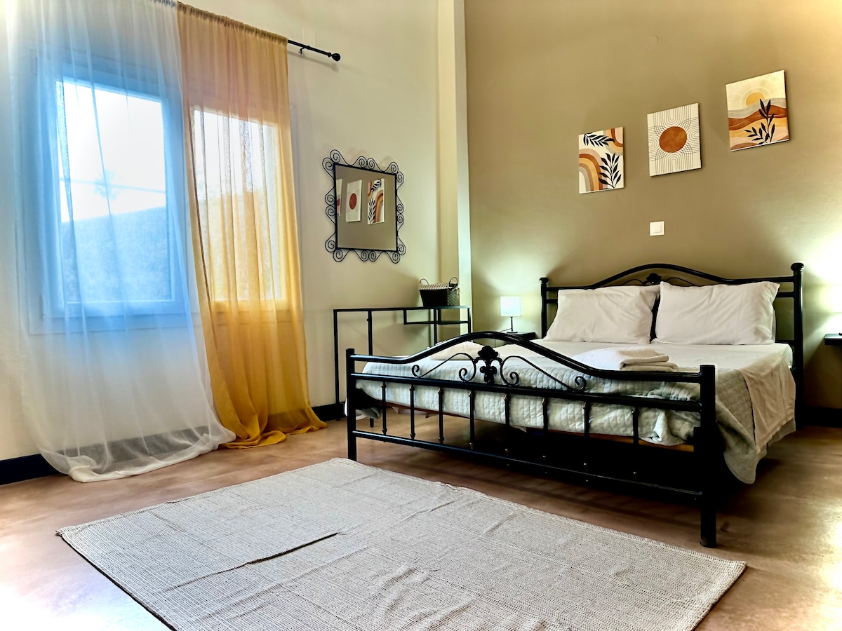 Slap af i dette rolige, stilfulde rum. Meget dyr parfume i små flasker ... og det er vores Manzaraki også: Lille, enkel, cool, lys, helt ny med træmøbler og rammer , fuldt udstyret med de nødvendige faciliteter. På bjerget med udsigt over havet og med sin egen have med træer og farverige blomster...klar til at være vært for din ferie og øjeblikke med omsorg !