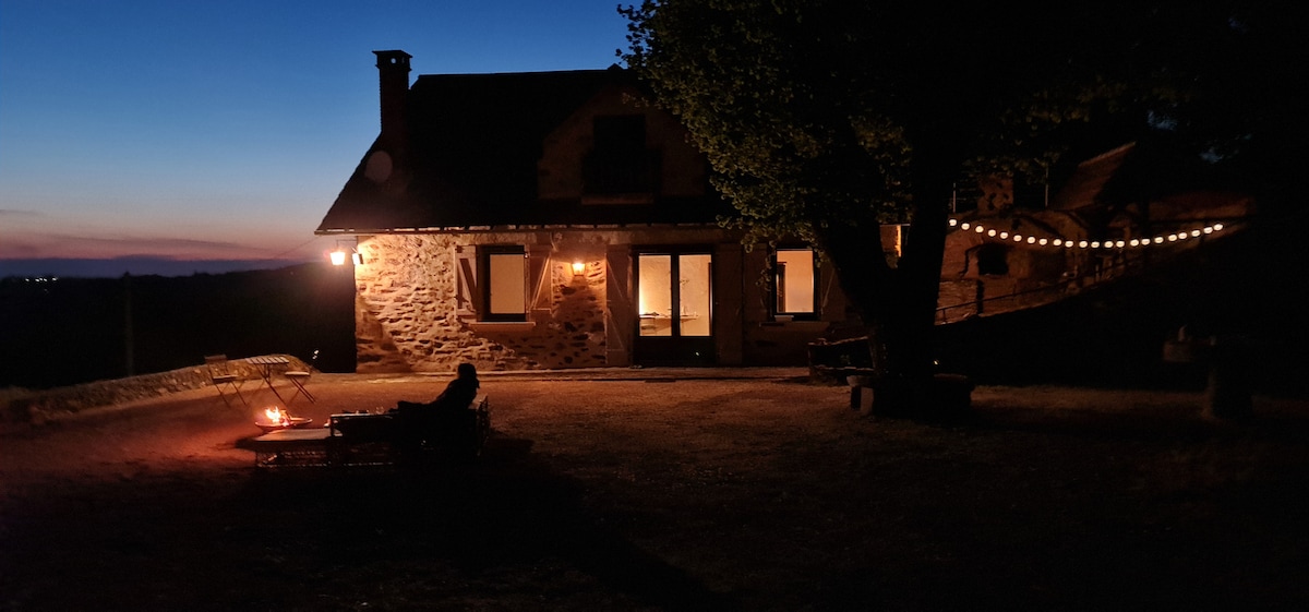 Beliggende 4 km fra A20, vil du blive budt velkommen af værten i et stenhus og en typisk Corrèze landsby. Opslaget deles med værten. Ideel til en pause i naturen på lange ture eller længere oph på landet. Hele loftslejligheden vil være til dig (to enkeltsenge, en dobbeltseng og en ekstra seng, hvis det er nødvendigt) og et fælles badeværelse. Toilet og vandhane på loftet. Fra terrassen er der en fantastisk udsigt over Vezere. Bemærk: Der vil være to b*****s i huset.