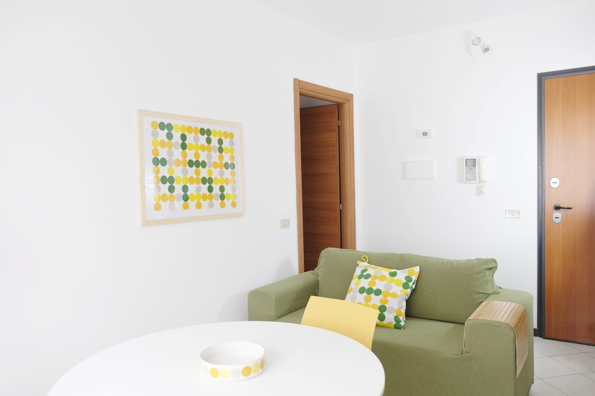 Skøn lejlighed i et roligt og hyggeligt lejlighedskompleks, der for nylig er bygget og inspireret til de traditionelle huse på landet i Norditalien. Lejligheden er i stueetagen, med en dejlig og rummelig have, der tilbyder total privatliv og komfort. Der er 1 soveværelse med dobbeltseng og 1 sofa. Alle faciliteter, herunder moderne køkken, tallerkener og madlavningsartikler, opvaskemaskine, badeværelse med bruser og vaskemaskine, tørrestativ og strygejern.