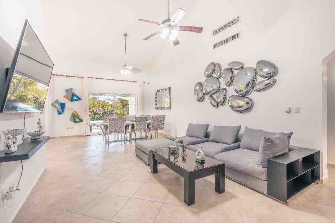 Smuk villa i Punta Cana/Den Dominikanske Republik, en perfekt sted til afslapning og komfort. Denne rummelige villa, der ligger i landsbyen Costa Cana, har 3 velindrettede soveværelser, der hver især tilbyder en fredfyldt atmosfære for afslappende nætter. Bliv underholdt med 4 fladskærms-tv'er og forbundet med hurtig og pålidelig wi-fi inkluderet. Uanset om du leder efter et fredeligt fristed eller et sted at slappe af med dine kære, er denne villa designet til at opfylde alle dine behov.