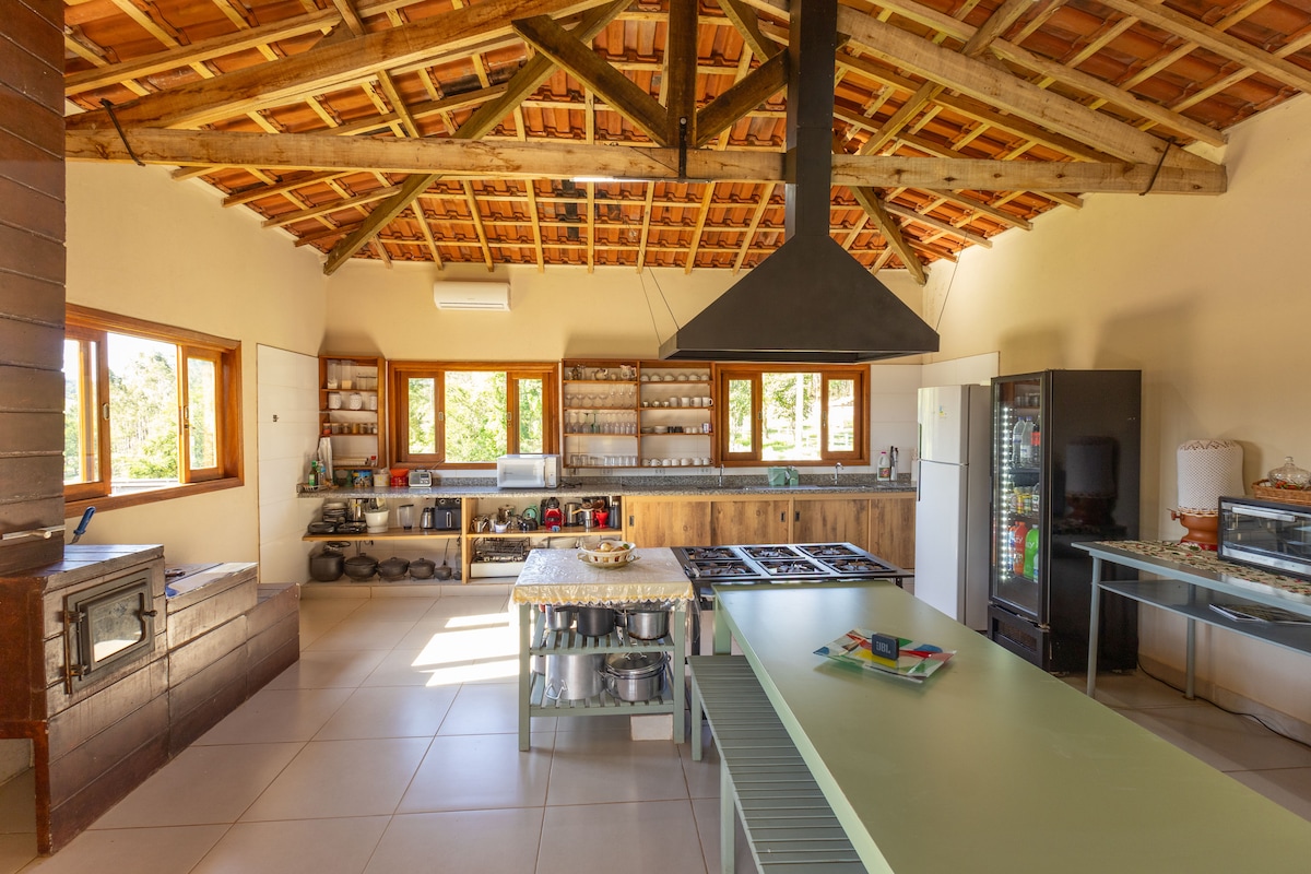 Sítio Veredas er et roligt fristed midt i naturen, ideelt for dem, der søger hvile, komfort og særlige øjeblikke med familie eller venner. Et hyggeligt sted, omgivet af grønne områder, designet til at give forbindelse, privatliv og velvære. Her har du hele stedet til din rådighed med store områder til socialt samvær, hvile og fritid i et miljø, der inviterer dig til at sætte farten ned og nyde hvert øjeblik. Jeg vil med glæde modtage dem.