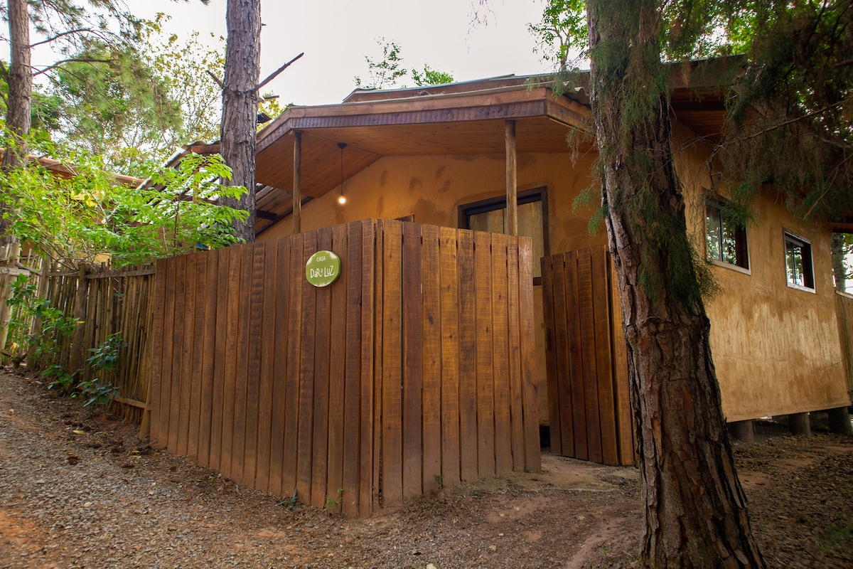 En anderledes oplevelse i et lerhus lavet af træ til træ og dekoreret med naturligt lys, der passerer gennem flaskerne i byggeriet. Hytten overrasker med sin rustikke stil. Det er hyggeligt og har en balkon med udsigt over søen, et boblebad med udsigt over bjergene og en pejs. Udstyret med minikøkken. Nem og hurtig adgang til dæmningen. Total kontakt med naturen i et bevaret atlantisk skovterræn fuld af egern og indfødte fugle. Inklusive morgenmad og sengetøj.