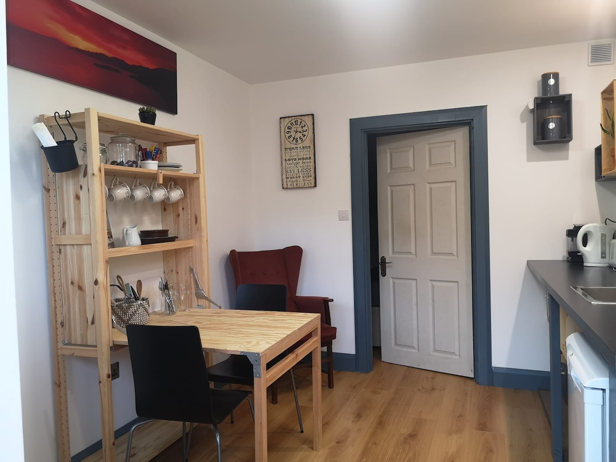 Lille ombygget bolig i et roligt område i Westport by, så godt beliggende, at du bare kan parkere din bil og slentre ned i byen, din bolig er også beliggende på grønne veje, så hvis du går eller cykler, er det lige uden for døren, bortset fra privat parkeringsområde er der også sikre faciliteter til at opbevare dine cykler eller kajakker.