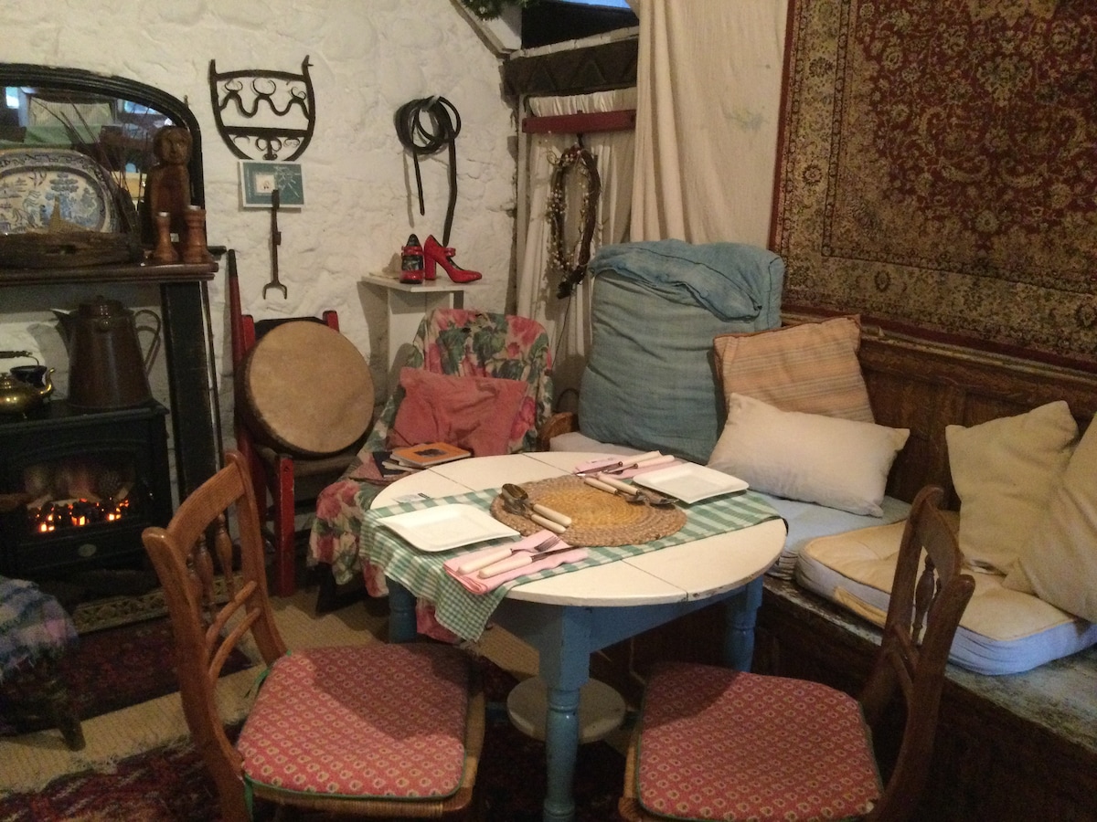 Skævt, hyggeligt lille kunstatelier med traditionel irsk karakter. Skjult i hjertet af byen, i dette 'Mellemriget'. Tekøkken, brusebad og trætopshusbalkon. Ideel til særlige lejligheder/kunstfestivaler/arbejdsophold. Det er en favorit for besøgende fra hjemmet og udlandet. Træd og dukk igennem en lille dør i de store porte, ind i en uventet, rolig oase - en 'magisk' gårdhave. Sover 2 på komfortable divaner, som dobbelt-/enkeltværelse. Morgenmad tilbydes. Se detaljer.