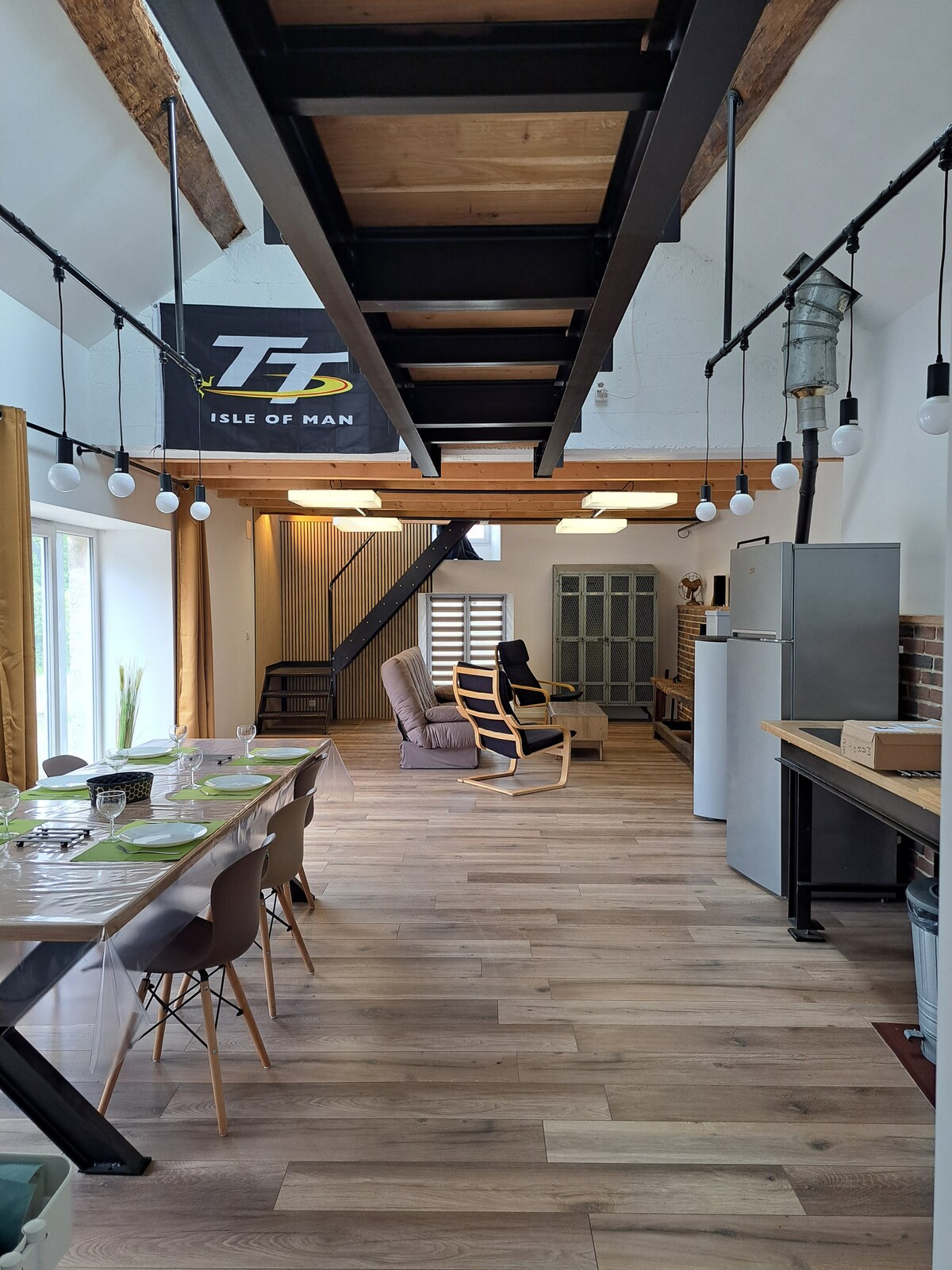 I et tidligere værksted, 7,6 km fra A31, denne atypiske og unikke bolig på grund af sit design , med terrasse og en stor privat og lukket parkeringsplads ikke overset. indgang, badeværelse, stor stue på 50 m2, 2 soveværelser på loftet, 1 queensize-seng og 2 enkeltsenge, der kommunikerer via en gangbro med udsigt over køkkenet og spisestuen. (en sovesofa, ) for din komfort er sengene klar, og badehåndklæderne er gratis. måltid til rådighed efter anmodning