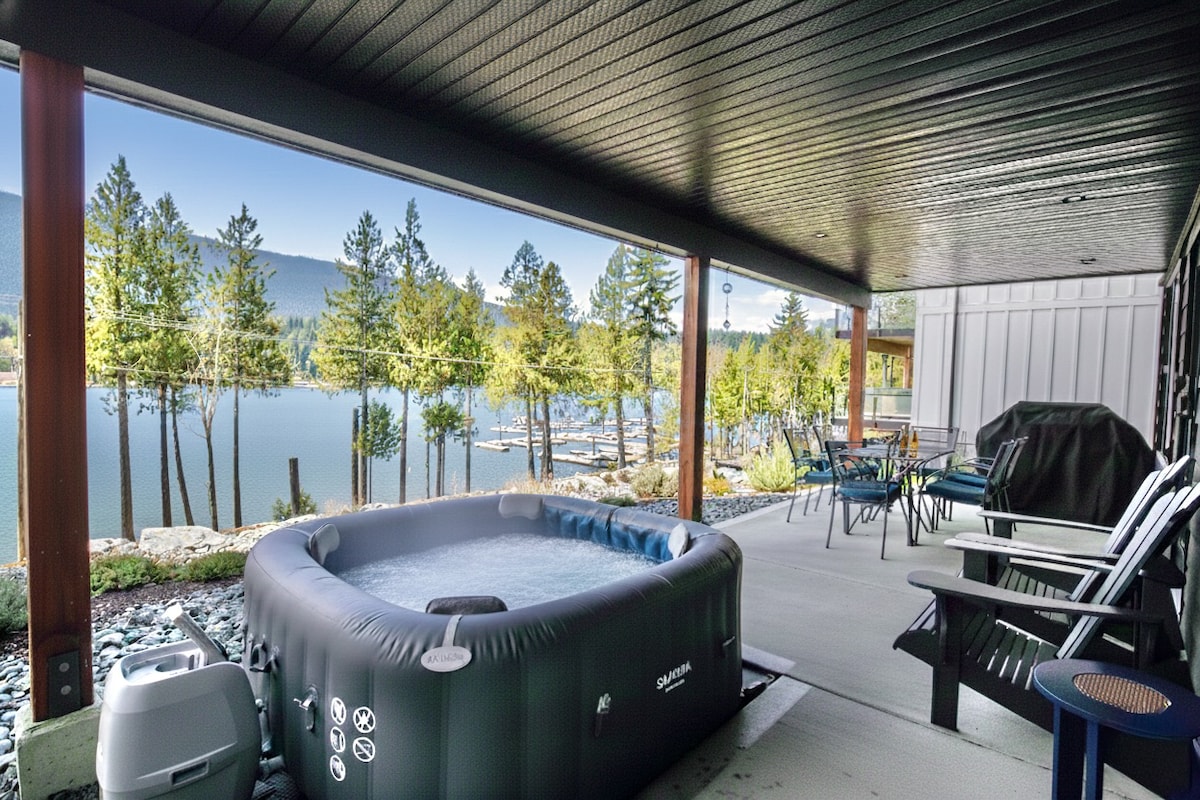 Newly built 2 bedroom and loft, lakefront cottage located in the west arm of the stunning Shawnigan Lake. Open concept kitchen and living room. Large deck with outdoor kitchen, dining area, bbq and fire pit. Outdoor shower, full laundry facilities and brand new large dock. Great for groups up to 8, and amazing for families with kids. Beach toys and some water toys as well as life jackets are available for use. Amazing year round accommodation with guaranteed relaxation!