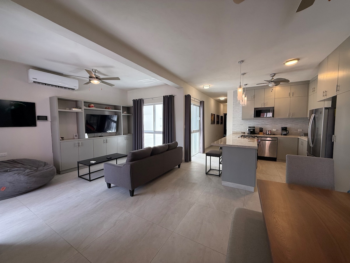 Tag på ferie i vores luksuriøse 2-værelses lejlighed i hjertet af Cozumel! Med fantastiske terrasser, et moderne opholdsområde og faciliteter af høj kvalitet er denne lejlighed det perfekte sted at slappe af og nyde øens ro. Slap af foran fladskærms-tv'et, spis ved det stilfulde bord til seks personer, eller tilbered dine egne måltider i det fuldt udstyrede køkken. Vores hyggelige soveværelser har queensize-senge, private terrasser og luksuriøst sengetøj, så du kan få en god nats søvn.