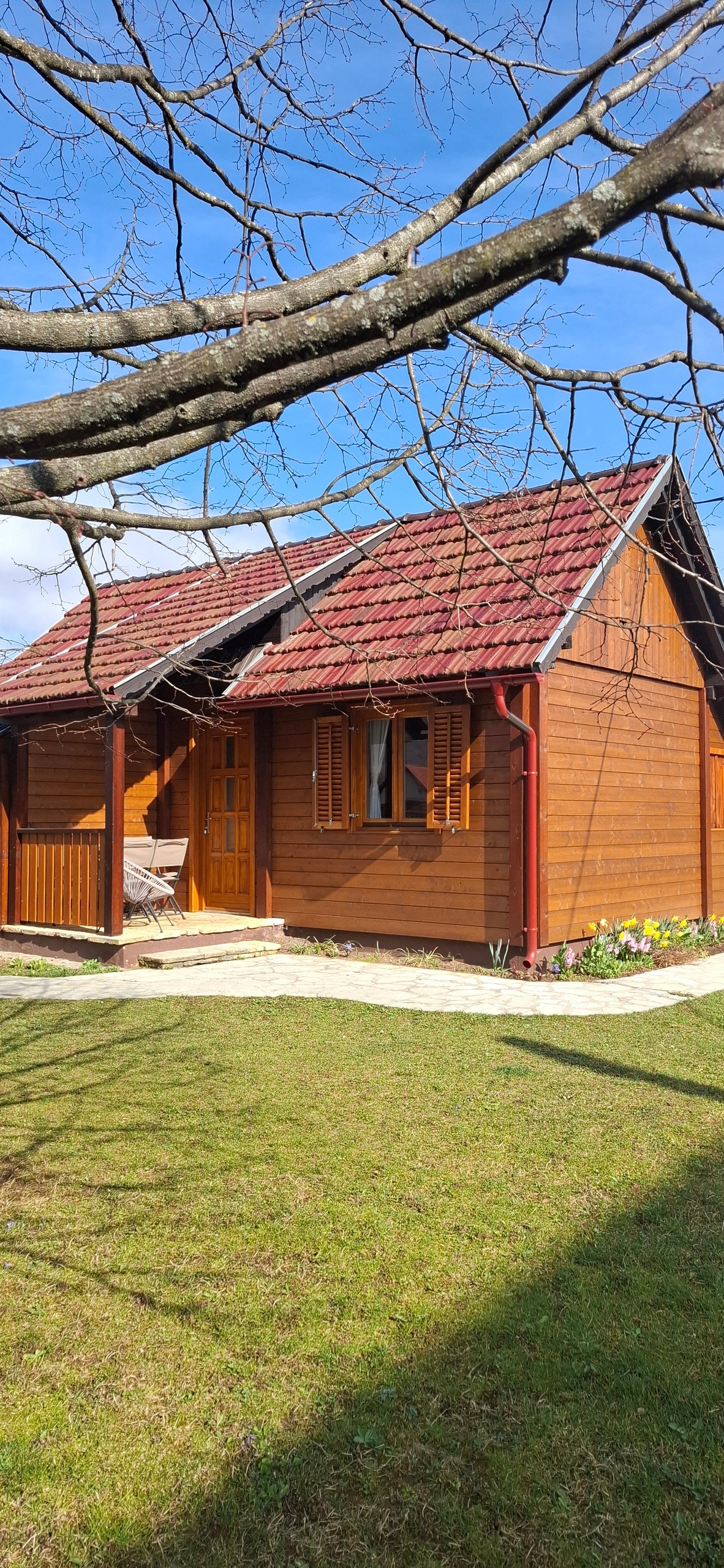 The house is wooden and very comfortable to stay, it has one bedroom with double bed, one bathroom with walk in shower, kitchen and living room which has a corner sofa bed. A large covered terrace with table and benches, as well as a large barbecue in the garden are ideal for socializing with your loved ones. HappyRiverKorana was created to give you moments to remember.
