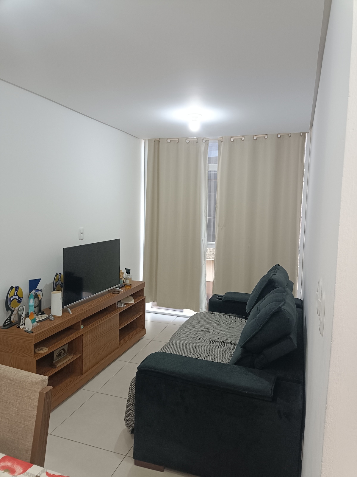 Apartamento completo super aconchegante em Cruz Alta, com tudo que você precisa: Sala de estar. TV 55". Cozinha com utensílios. Quarto 1: 1 cama de casal e 1 colchão solteiro extra. Quarto 2: 1 cama de solteiro, 1 cama auxiliar. Fornecemos roupa de cama e banho. O sofá pode acomodar duas pessoas. O prédio fica a 5 minutos de carro do centro. Local tranquilo. Uma vaga de garagem em estacionamento fechado. Ar condicionado na sala. Prédio com elevador.