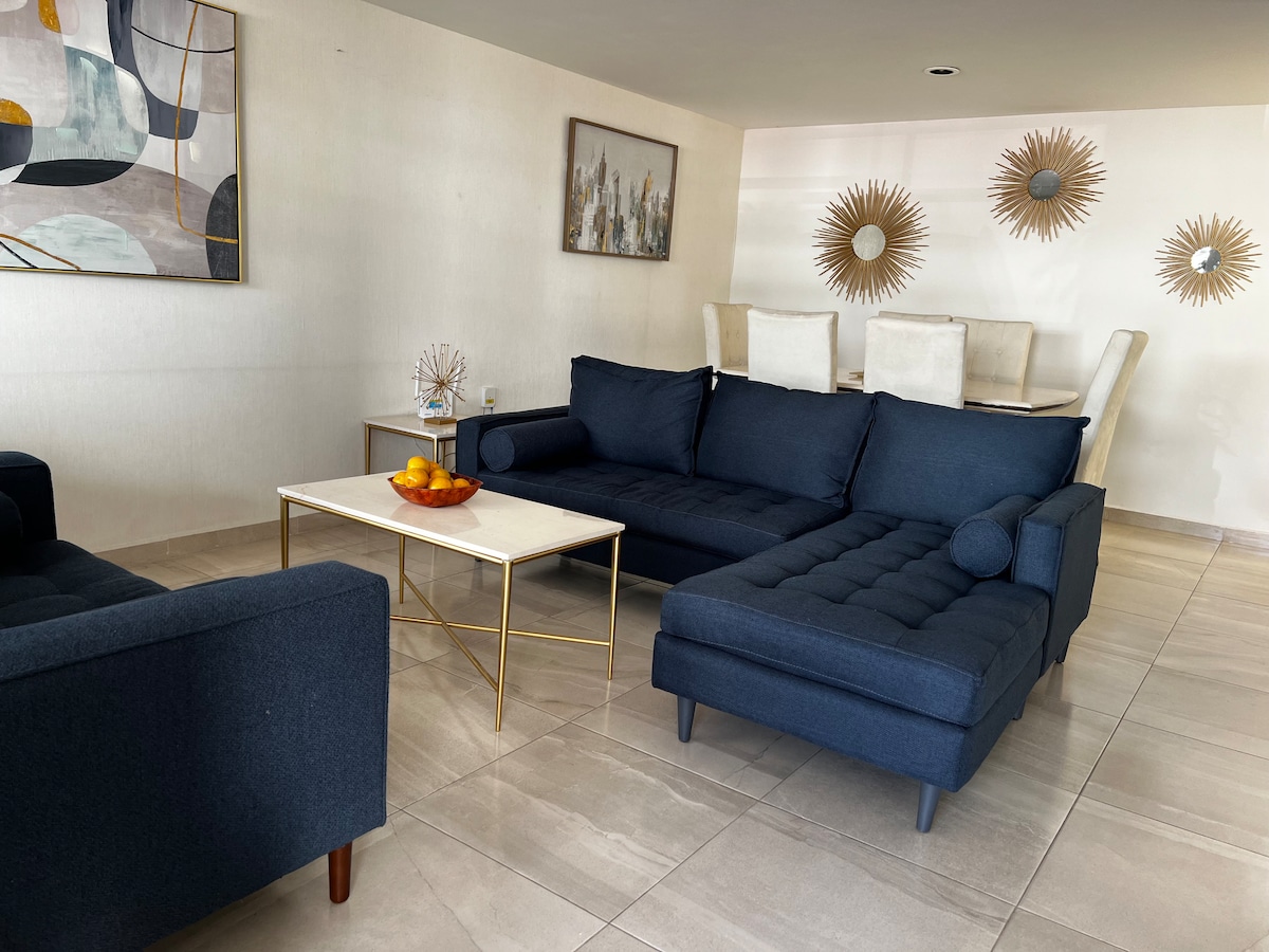 Disfruta de un departamento VIP en planta baja, en conjunto residencial privado cerca de Planta VW, Outlets Puebla, Val’ Quirico y zona comercial. Tiene dos baños completos y dos habitaciones, la principal con cama king size, TV con Netflix, vestidor y baño completo; y la secundaria con litera de 2 camas individuales. Colchones y almohadas Luuna. Cocina integral equipada y sala con sofá-cama. Comedor con 6 sillas. Wifi. Cuarto de lavado y jardín privado con muebles de exteriores para descansar.