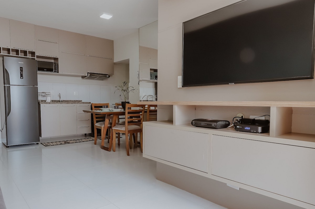 Ny og smart lejlighed. Beliggende på Miguel Sutil Avenue foran Assai supermarked og 100 meter i gåafstand fra Estação Shopping Center. Bygningen har fitnesscenter, kontorfællesskab og tøjvask. Lejligheden er udstyret med smart-tv, mikrobølgeovn, blender, sandwichmaskine, elkomfur og køleskab. Der er også strygejern, hårtørrer og alle køkken- og rengøringsredskaber. Dobbeltseng (Ortobom-madras), 4 puder, 200 trådlagener og Buddemeyer-håndklæder.