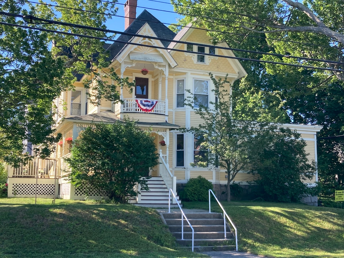 *Covid-Clean* Lav morgenmad i et lyst køkken med robuste trægulve i dette rolige victorianske hjem. Sæt dig ved et traditionelt spisebord i et åbent rum med levende træpaneler, rolig indretning og et geometrisk tæppe med blå farver. Lys og rummelig med privatliv på hele øverste etage. ** INGEN FÆLLES OMRÅDER** Dette er en dedikeret Airbnb-lejlighed uden nogen form for fællesområde. Ultimativ privatliv. Denne lejlighed kan lejes som (1) soveværelse for op til (2) gæster eller som (2) soveværelse for op til (4) gæster. Det koster 50 dollars/nat ekstra for (2) soveværelser. Bekræft, at det andet soveværelse er ledigt, hvis du er interesseret. Begge muligheder har et badeværelse med badekar og brusebad. Fuldt servicekøkken med komfur, køleskab og mikrobølgeovn til privat brug. Stor stue med (2) sofaer og fladskærm. Det meget store soveværelse med den ultrakomfortable kingsize-madras har også kabel-tv. . Både muligheden for et soveværelse og to soveværelser har deres egen private indgang, privat køkken og bad på tredje sal. Ingen fælles plads med andre med enten en eller to soveværelses lejefaciliteter. Privat indgang. Rummelig lejlighed med et eller to soveværelser med fuldt køkken, bad og stue samt andre faciliteter. Vi er til rådighed for eventuelle spørgsmål, men som regel giver vi gæsterne deres privatliv. Huset ligger få skridt fra nogle af Portlands mest populære spisesteder, herunder Knotted Apron, Woodfords Bar and Grill, Bird and Co., The Treehouse og Elsmere BBQ. Ikke langt til Old Port-området, hvor du kan gå på opdagelse i skaldyrsmarkeder og butikker. Besøg Portland Observatory for at udforske et historisk fyrtårn. Tæt på al offentlig transport og Portland International Airport Parkering i indkørslen er en mulighed, spørg venligst, hvis du er interesseret. Gadeparkering er tilgængelig, det er baseret på et ulige /lige system af gadeadressen. Du skal parkere på den samme side som datoen ville være kl. 12.01 på en given dag. Du bor på 32 Lawn Ave