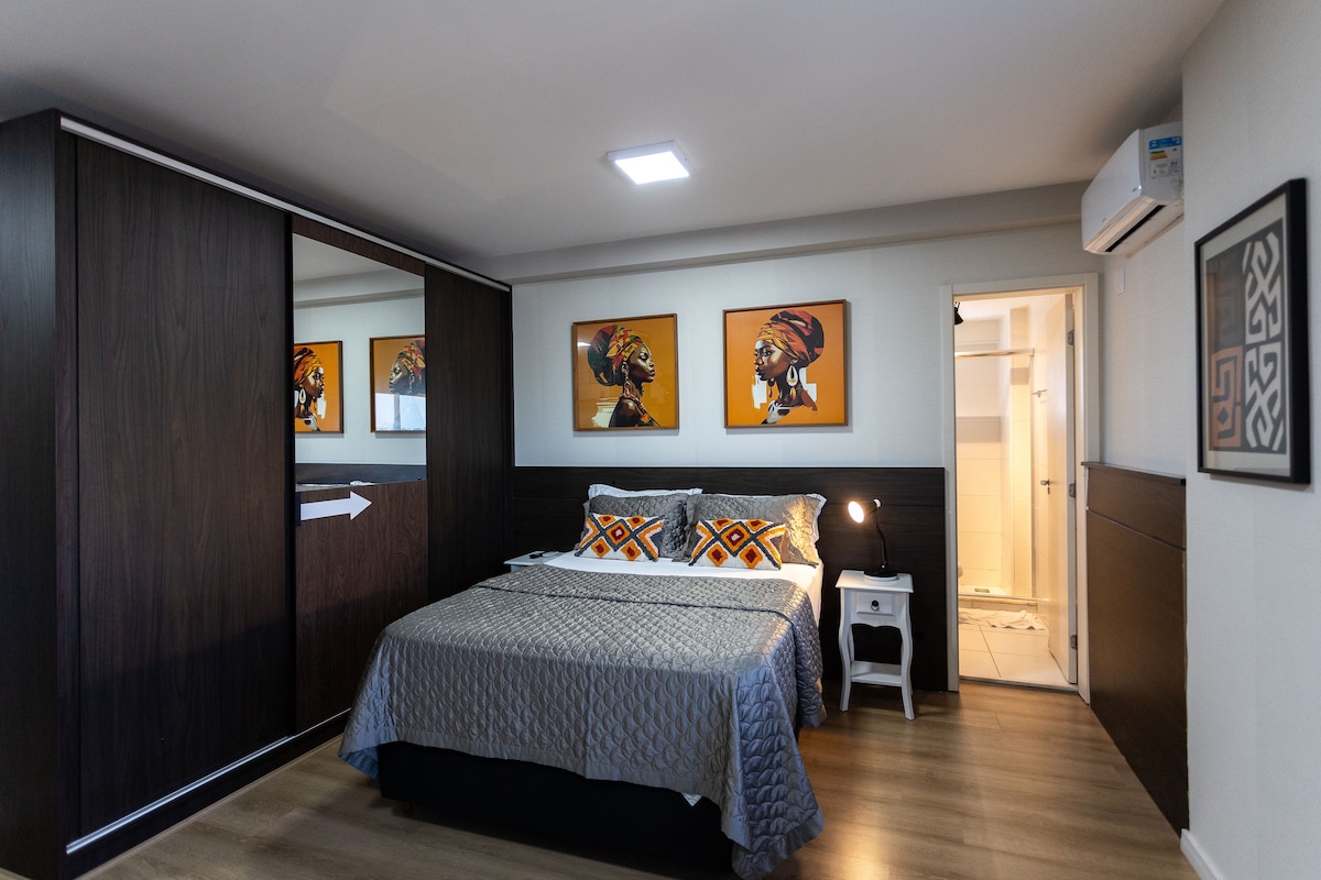 Smuk lejlighed beliggende i hjertet af byen. I nærheden af det boheme kvarter Batel er der masser af butikker og indkøbscentre, såsom Shopping Crystal og Shopping Pátio Batel, Rua 24 horas. Den er ideel til to personer og har en stue/spisestue, et soveværelse, et komplet badeværelse og et fuldt udstyret køkken. Boligen har også: Wi-fi, Smart TV, aircondition varmt og koldt, varmt og koldt vand i køkken og badeværelse. Vi leverer sengetøj og badehåndklæder.