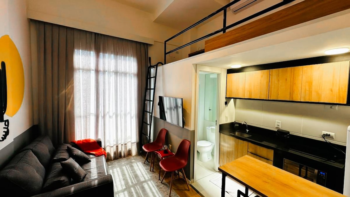 Designstudie designet af arkitekter i hjertet af Curitiba. Fuldt møbleret med moderne og moderne indretning, førsteklasses apparater og upåklagelig finish. Plads til op til tre personer med en dobbeltseng og en enkeltseng. Komplet køkken, højhastigheds-wifi, smart-tv og aircondition. Perfekt til arbejde eller fritid. Privilegeret beliggenhed i centrum, tæt på alt. Nyd en overlegen værtsoplevelse i en unik og sofistikeret bolig. Bruseren er perfekt😍