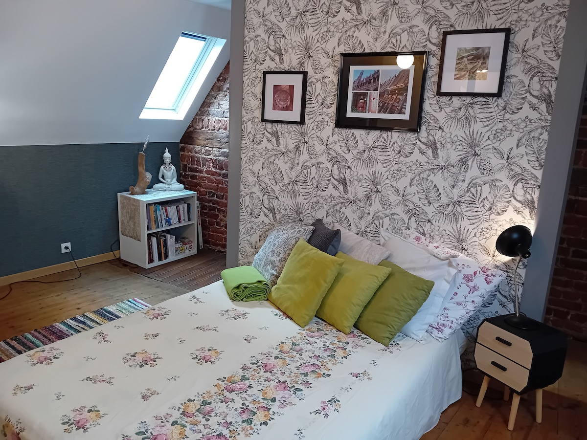 En rigtig afslappende kokon i fredelige og grønne omgivelser. Du vil føle dig hjemme med dens komfort og bohemeindretning. Beliggende i et beboelsesområde tæt på butikker, restauranter, apotek og veje: - 5 minutter fra VILLENEUVE D'ASCQ, Grand Stade, Campus Universities, Haute Borne - 10 minutter fra Lille, LESQUIN - 15 minutter fra Belgien (Tournai) Parkin 5 minutter fra Lac du Héron og LAM Nem parkering i nærheden