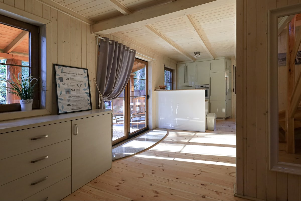 Et hjem med drømmere med udsigt over skoven, beliggende i hjertet af Kashubia, ekstremt komfortabelt og moderne og hyggeligt, hvor nøje udvalgte møbler og stoffer giver dig mulighed for at slappe af og slappe af. En børnevenlig bolig med legetøj, bøger, spil og en minilegeplads og trampolin. Gæsterne vil være tilfredse med en rummelig terrasse med liggestole, en stor have, en grill, en bålplads og en pejs. Det umiddelbare område bugner af søer, skove og arkitektoniske monumenter. Huset ligger 30 km fra Gdansk.