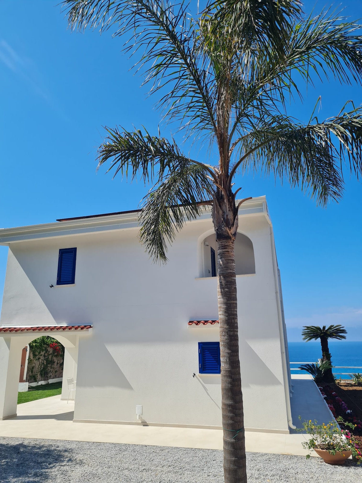 Boutique flat on the 'coast of the gods' in Parghelia/Tropea in Calabria. Refurbished and renewed in 2020. Max. 4 pers. No animals Living room and fitted kitchen with washing machine/dryer, dishwasher, fridge, oven, induction hob. 2 bedrooms with double beds and spacious closets. Bathroom with shower. 2 spacious terraces, communal swimming pool (July an August open and free to use). Beach within walking distance, in front of the door! Airco, WIFI , safe, parking in front of the door.