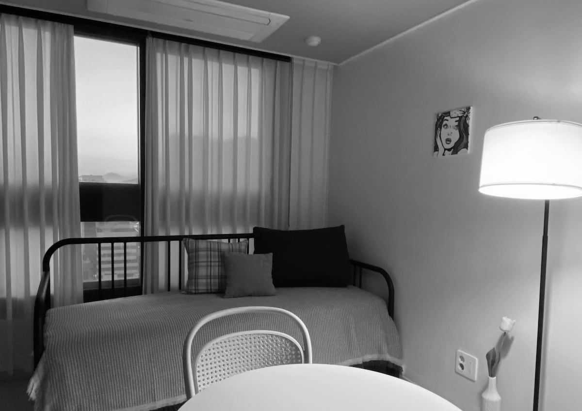 Sprog: koreansk, engelsk, tysk • Tre minutters gang fra metrostationen • 4 stop med metro fra Dongdaegu-stationen °10 minutter i bil til indgangen til Palgongsan °3 minutters gang fra afkørsel 4 på Coastal Station på metrolinje 1 ° Ved siden af bryllupsstedet såsom Queen Bell Hotel, M Star House, Novi Gala osv. ° Dagligvarebutik i nærheden, Homeplus Dette er anden sal i en bygning uden elevator:) Grundlæggende antal personer 2 personer -> Yderligere personer er ikke mulige (Dette er en studiolejlighed med et lille køkkenområde og eget badeværelse. Der er 2 super enkeltsenge, og det maksimale antal personer, der er tilladt, er 2.) Offentlig transport er meget praktisk og ligger i et beboelsesområde, så du kan slappe af og sove roligt. Det er måske ikke egnet til dem, der foretrækker et sydende centrum. ^_ ^ * Foretag en reservation, når du har kontaktet os for reservationen samme dag*