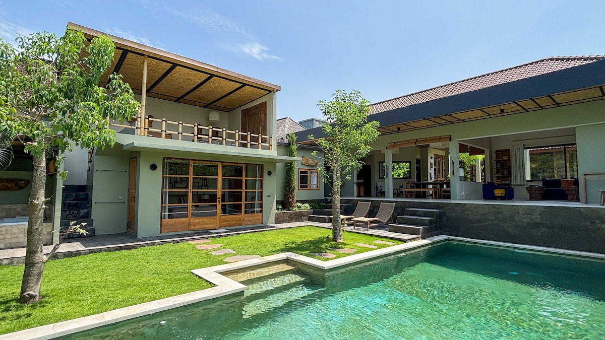 ★ Luksuriøs privat balinesisk villa, der blander traditionel arkitektur med moderne komfort. Ideel til familier eller grupper, der søger plads, privatliv og et førsteklasses Bali-ophold. Denne villa på 500 m² ligger på 1.000 m² privat grund og har et rummeligt åbent opholdsområde og 5 soveværelser med eget badeværelse. Nyd en 20 meter lang privat swimmingpool i fredelige tropiske omgivelser. Professionelt personale på stedet dagligt. En sikker og rolig villa, ideel til lange ophold, familier og grupper, tæt på Balis seværdigheder.