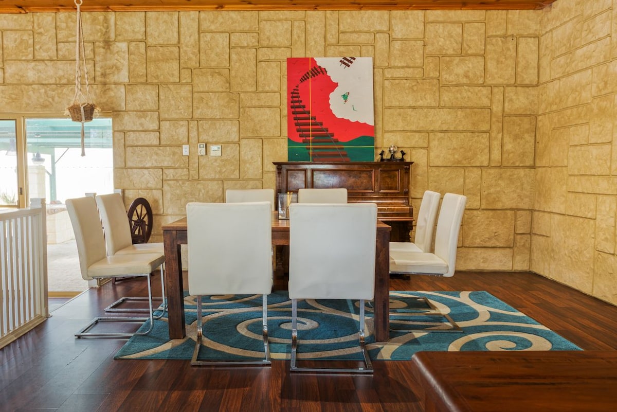 Welcome to Ayatana By The Bay, a relaxed coastal retreat with beautiful ocean views over Geographe Bay, located directly opposite the beach. Wake to the sound of the ocean, take a short stroll across the road for a walk along the sand, and enjoy sunsets from the deck. Perfect for families, couples or friends, Ayatana is just a 20-minute walk along the foreshore to Busselton Jetty, cafés and town, and a great base for exploring the Margaret River wine region.