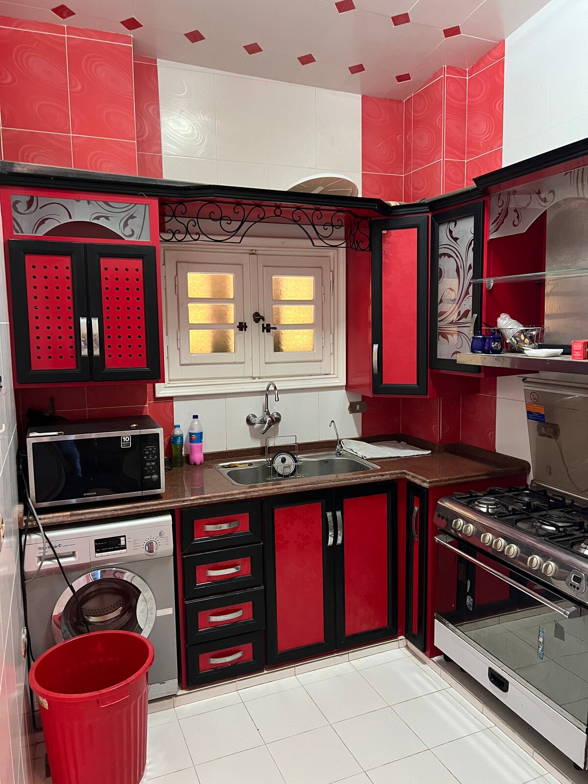 Lejligheden ligger i en meget populær gade، Alle tjenester er inden for gåafstand، stedet er meget sikkert og rent. Vi kontakter dig, når du har brug for det under dit ophold
