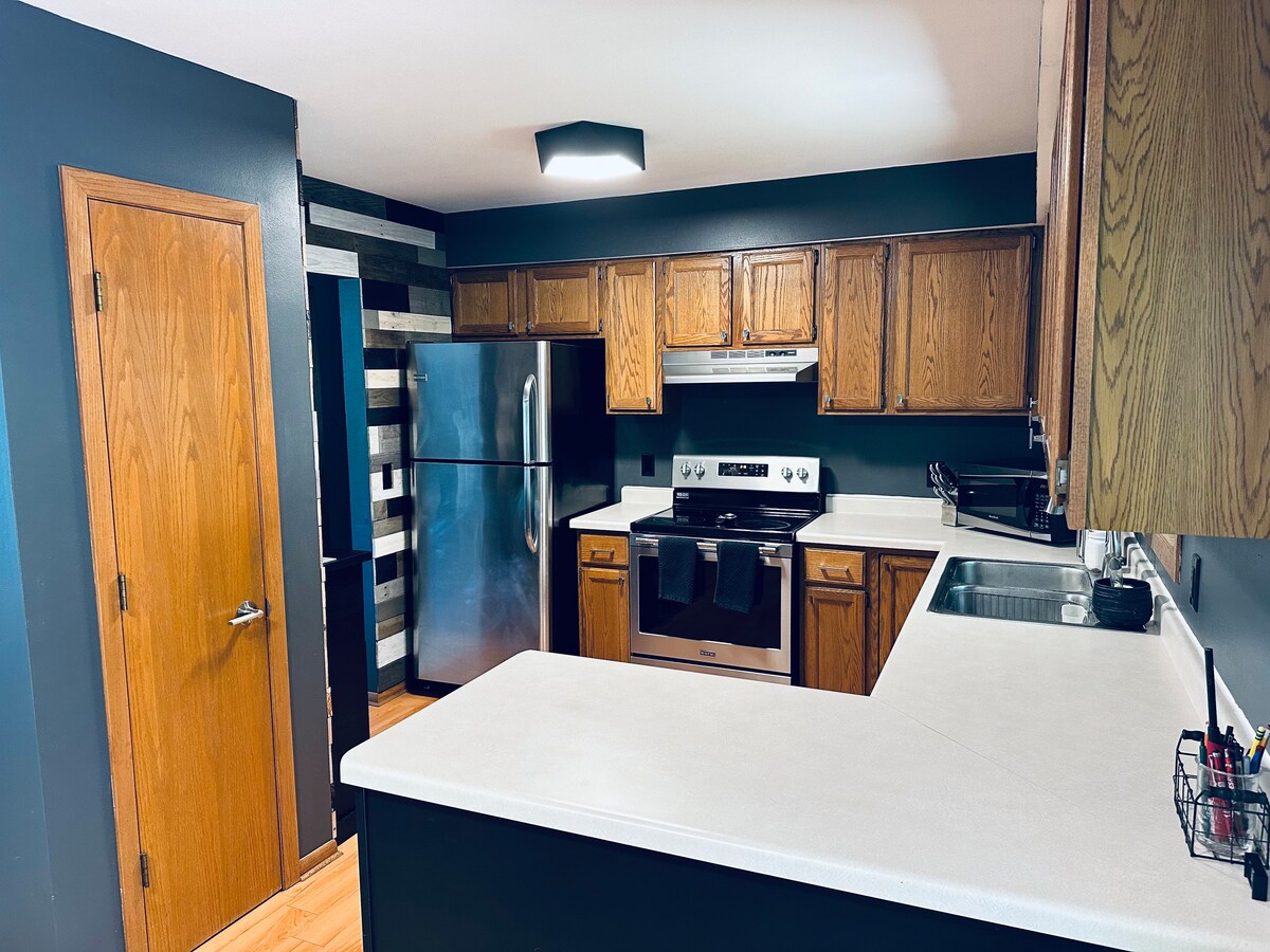 Centralt beliggende kun 15 minutter til lufthavnen, 17 minutter til downtown Madison, 45 minutter til Devil's Lake, en time til Milwaukee. Kun en mile fra snesevis af restauranter, Costco, Target og en Marcus Palace-teater. Føl dig genopladet, når du sover i de luksuriøse hybridsenge. Føl dig hjemme på terrassen med en drink i hånden, mens du ser på bålpladsen og laver mad på Weber-gasgrillen. Det fungerer, ingen problemer - tilslut til dockingstationen komplet med tastatur, mus og ultrabred skærm.