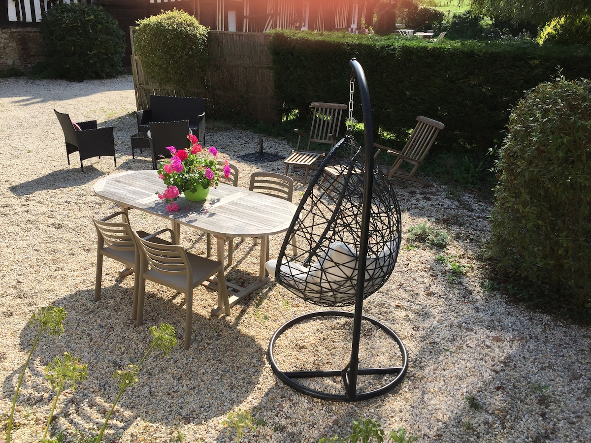 Nyd vores smukke, 180 m² store normanniske hus, der er fuldstændig renoveret, sammen med familie eller venner. Perfekt både sommer og vinter (pejs og brændeovn) Alt er til stede, så du kan have det godt: bordtennis, fodboldmål, petanque, billard, bordfodbold, arkadespil, trampolin og mange brætspil. Perfekt beliggende 5 minutter fra A13, samtidig med at være helt stille. 10 minutter fra Pont l'Evèque, Beaumont en Auge, Bonnebosc. 20 minutter fra Deauville/Villers/Houlgate.