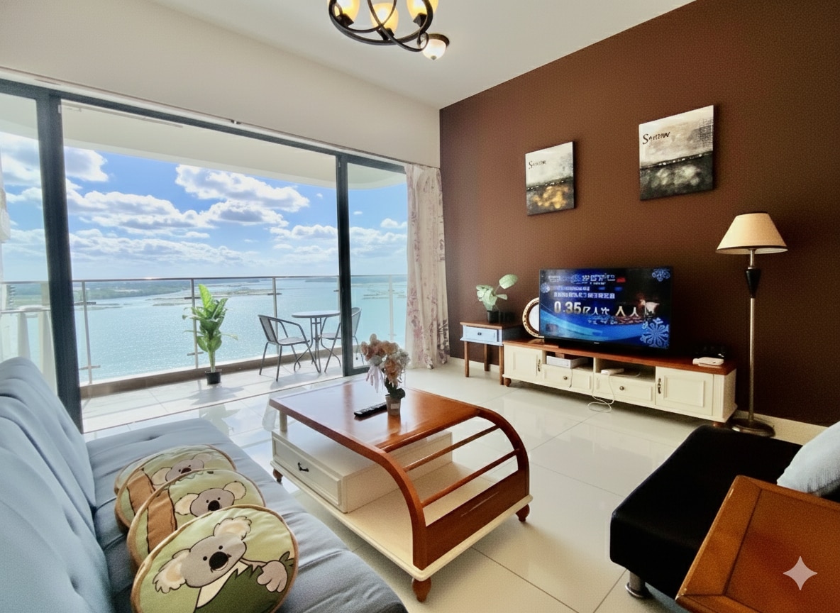 Guests may select CHANGE POLICY for refundable option upon booking Welcome to your perfect Johor Bahru escape! This stylish 3-bedroom, 3-bathroom seaview condo sleeps up to 8 guests and is thoughtfully designed for romantic stays, family gatherings, or group trips.