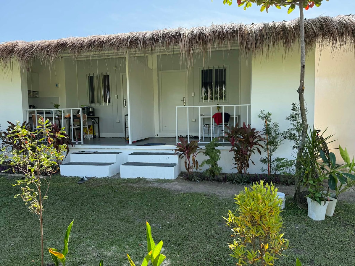 Wake up to the sunrise to the sound of the ocean waves lapping on the white sandy beach. Relax on the deck to hang out with your family. Personal maid service. On-site spa discounts. Walking distance to Cloud 9 with spectacular views of Rock Island, Stimpy's, and Jacking Horse surf spots. Full kitchen, AC, WiFi, hot shower, outdoor deck. Walking distance to cafes, restaurants and grocery. Airport transfers, motorbike rental, surf lessons, pilates, and massages can be organized.