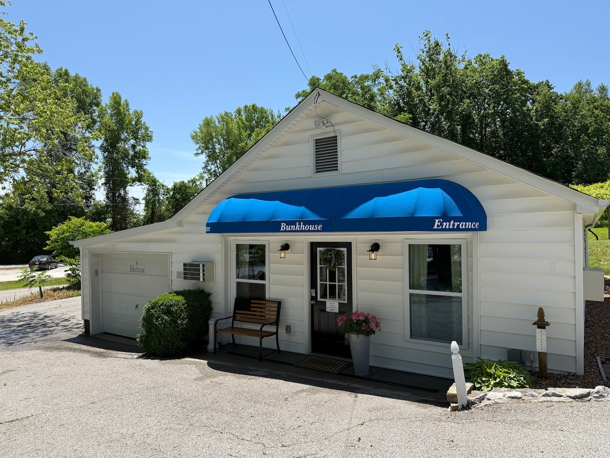 Dette 536 kvadratmeter store hus, menes engang at have været en sovekurv for jernbanehold, der skiftede vagt om natten. Fuldt renoveret og opdateret i 2021 af en lokal kunstner, vil du finde skræddersyet metalkunst overalt, granit bordplader og en meget varm hytte følelse med et køkken og badeværelse færdiggjort med lokalt købt Missouri mørkerød cedertræ, 10 minutter fra Six Flags, Purina gårde 15 minutter fra Hidden Valley og 45 minutter fra centrum, dette sted er i en fantastisk beliggenhed og vil ikke skuffe!