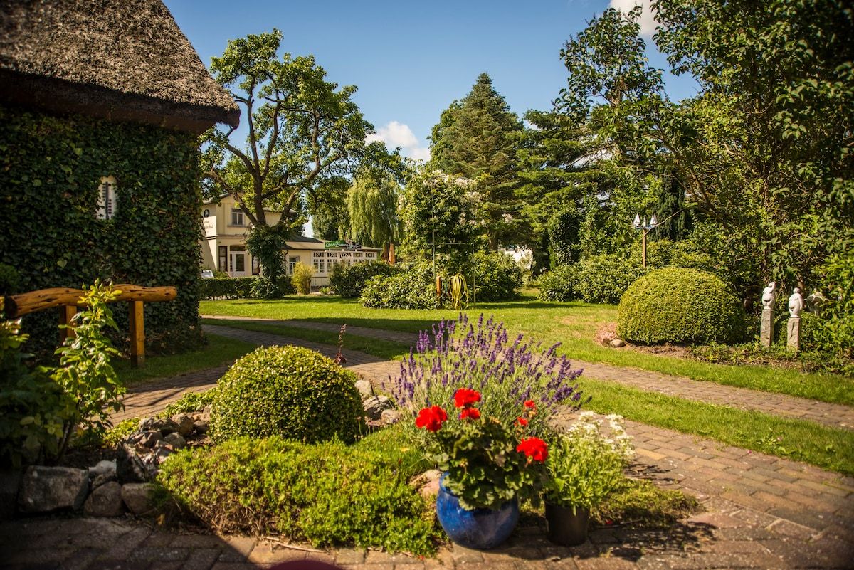 Vores lejlighed i Gielow sommerhus kaldes ofte et blåt værelse af vores gæster. Dette er ikke særligt stort med 12 m², men det udstråler absolut hygge og høj komfort! Vores enkeltværelse har satellit-tv, gratis WiFi, radio, minikøkken (køleskab/fryser, kedel, kaffemaskine, brødrister osv.), badeværelse med bruser og toilet. Parkering på vores ejendom. Indeværende cykeludlejning & strand stol leje på vores bopæl.