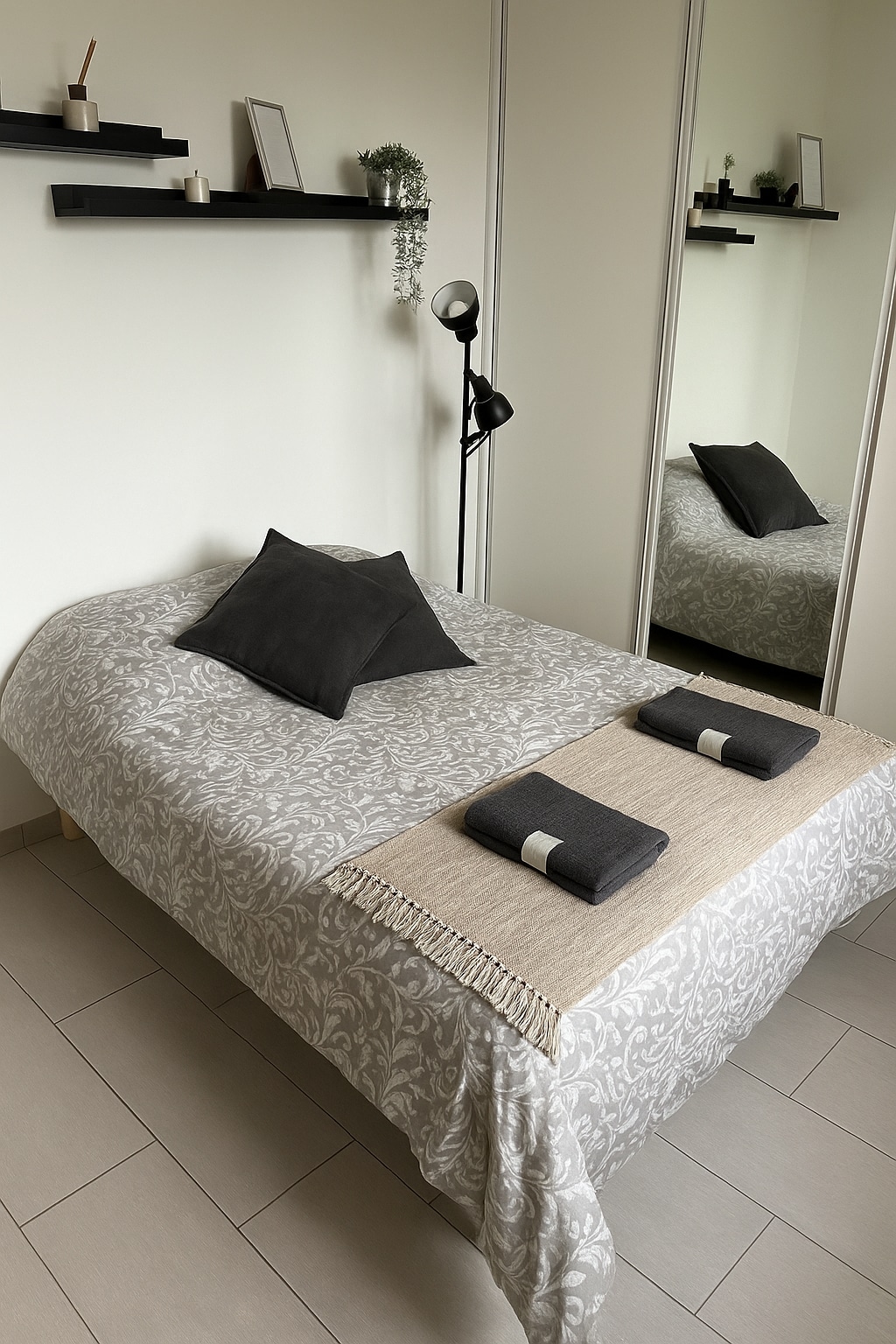 Velkommen til min mors lejlighed! Boligen ligger i hjertet af den gamle bydel, ikke langt fra biografen og mange restauranter. Flere parkeringspladser inden for 200 m. Du vil sætte pris på boligen for dens ro, dens indretning, og den sindsro, der udstråler fra den, det er et sted, som jeg synes er afslappende, hvor det er godt at leve. Påmindelse: - Vi ønsker ikke dyr i lejligheden, undtagen kanariefugle! - Vi leverer ikke håndklæder.