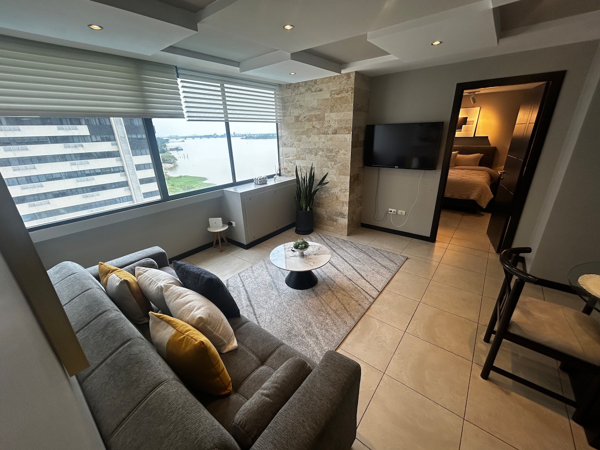 Moderne minimalistisk lejlighed i Samborondón, beliggende i et privilegeret område med privat sikkerhed døgnet rundt. Ideel til familier eller ledere, der søger komfort og ro. Lige foran El Dorado Mall. Den har 3 soveværelser, der alle har tv med Netflix og aircondition. Stuen har et 65" tv. Du har også højhastighedsinternet på 100 Mbps, der er perfekt til at arbejde komfortabelt og nyde et praktisk, afslappende ophold.